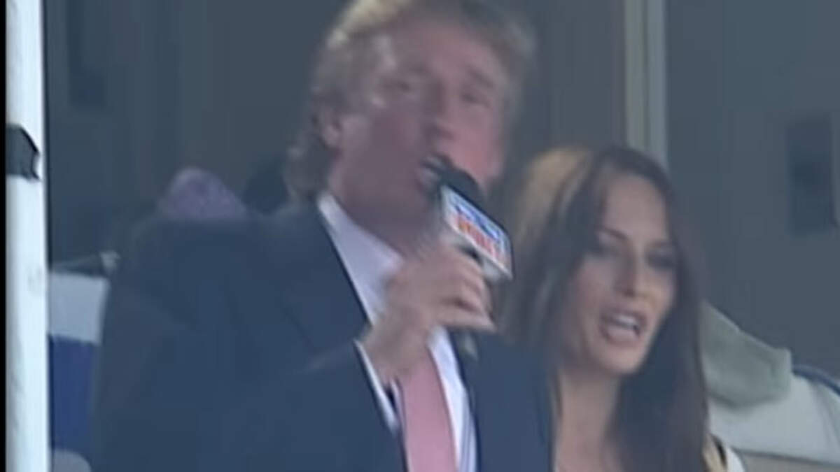 For some reason, Donald & Melania Trump were once asked to lead the crowd at Wrigley in the traditional 7th Inning Stretch during a Chicago Cubs game. Donald obliged and sang "Take Me Out To The Ball Game." Poorly, but enthusiastically. This is from 2007.
