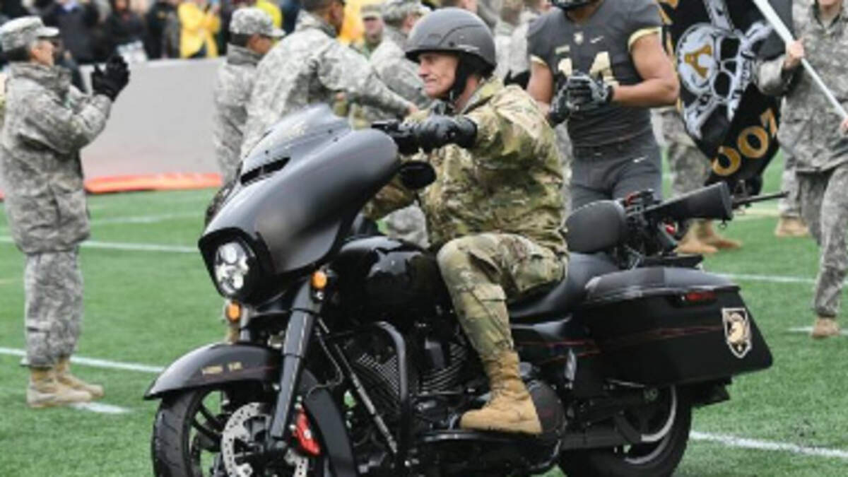 Caslen once again made quite the entrance this past weekend at USMA’s Michie Stadium, where the Black Knights were set to take on North Texas, leading his team onto the field riding a motorcycle.