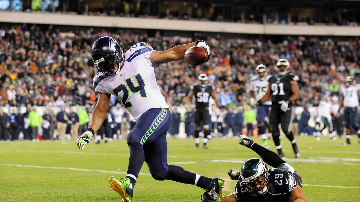 Watch as former Seahawks RB Marshawn Lynch hilariously "narrates" an iguana escape from "Planet Earth." Photo: Getty Images