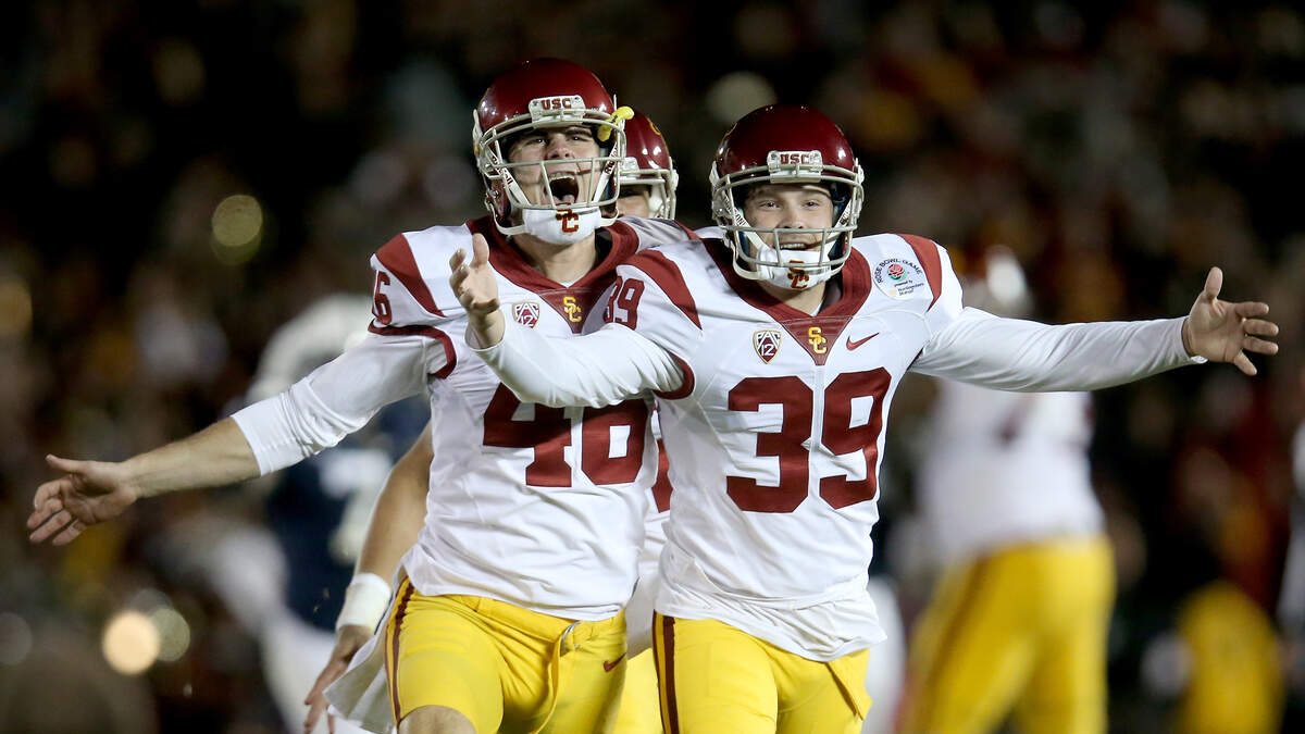 Matt Boermeester's 46-yard field goal on the final play gave #9 USC a dramatic 52-49 win over fifth-ranked Penn State in the Rose Bowl. Leon McQuay the Third's 32-yard interception return set up the winning kick as USC scored 17 points in the fourth quarter to rally for the win.