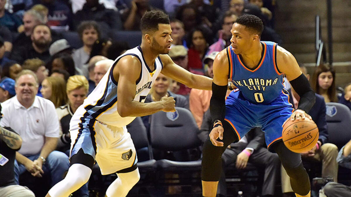 Russell Westbrook fell a rebound shy of his record 42nd triple-double but the Thunder closed out the Grizzlies, 103-100, in Memphis. Westbrook scored 45 points, while nailing a career-high eight three-pointers, and added 10 assists, nine boards and five steals.