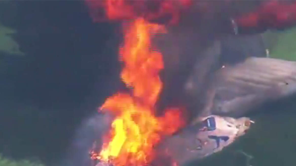 Emergency crews are on the scene after a blimp crashed today near the site of the U.S. Open at Erin Hills, Wisconsin. There are no immediate details of what happened, but video images show the blimp apparently on fire before it hit the ground near Highway 83 and Highway 167.