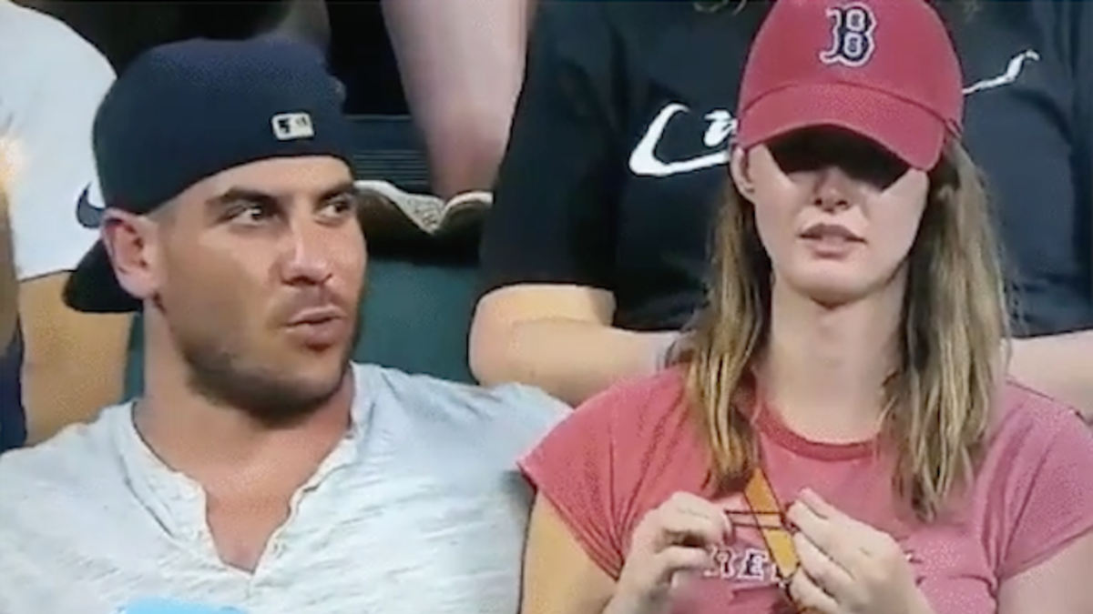 And no, it's not a Yankees-Red Sox thing - they actually seem to be at a Cleveland Indians game.