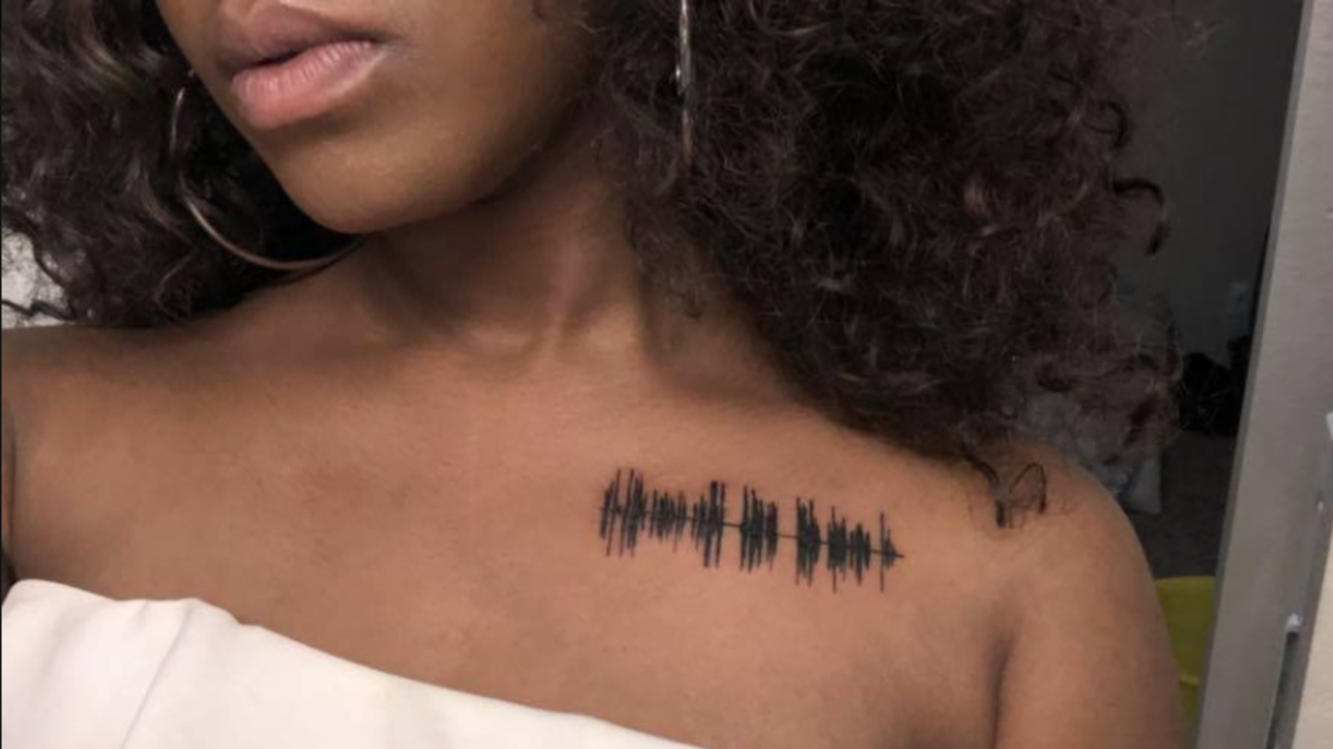 Sakyrah, a singer, was working on new music and watching the sound waves on a screen. It gave her the idea to get ink of her grandmother's voicemail. In researching the skin art, she came across a company called Skin Motion, which has an app that plays the audio of sound wave tattoos.